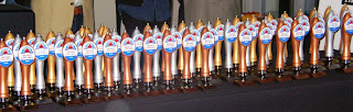 Photo Credits from top to bottom: Gold, Silver, Bronze tap handle trophies, Denison's Michael Hancock and Stephen Beaumont, Garrison's Brian Titus with his Beer of the Year tap handle and Beer Store manager.