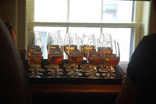 While most people were still in bed sleeping off the effects of Friday night, I was on my way to Markham to work the bar for the Canadian Brewing Awards judging. I arrived shortly after 9:00am to the Duchess of Markham pub located on Main Street and started preparing for the 10:30 start time. Small stemmed glasses were arranged on trays and were individually marked with the corresponding identification numbers (category, brewery, # of entries). The first two categories were pulled from the fridge, allowing them to warm slightly.