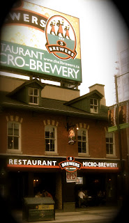 The beers are well made, subtle, not crazy, but definitely done right. After sampling all five during our visit I walked away thinking that the Belgian Wit was the best of the bunch - nice and refreshing, thirst quenching and true to style. The price per pint is quite reasonable too. A pint of the Blond and the Red cost $5.50 and the Wit and the Brown will set you back $5.85. Pitchers run for $13.95 and $14.95 and a sample of the four draught beers cost $6.75. And The 3 Brewers also offer the option of purchasing a one litre glass at $8.75 - $9.10, a great deal for the hefty mug, or schooner as the boys out east call them. A bottle of the La Belle Province cost $11.45 and we had ours poured by the brewmaster himself, making sure the bottle didn't touch the glass. The beer geeks out there will also be happy to hear that the Toronto location will take part in the seasonal beer program that all other locations offer. "We will be doing new beers every two months or so, like a Christmas beer, an Oktoberfest, a Spring beer, and more," claimed Kakaroubas.