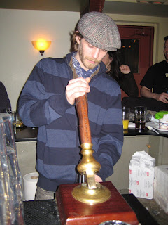 George Eagleson, brewer at F&M, was one of the first people I encountered when I walked thru the door so we headed over to his cask of Coffee Oatmeal Stout for the half pint sample. We stood at the bar and talked about some things that F&M have in their sights (nothing that can be mentioned yet), but he did inform me that the stout has sold exceedingly well, so well that places were running out of it very fast. "We debated brewing another batch, but we decided that it was a good run and we'll take that into account next year."