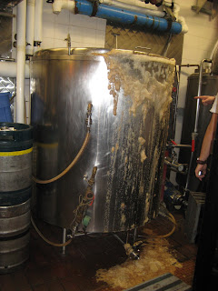 The bartender pours pints from the copper covered draught tower, which hides the lines that come down from the cooling tanks holding the finished product. No kegs here, everything comes straight from the tanks. "We plan to brew 28 days a month in this location," said Kakaroubas. "In Montreal we brew 30-35 batches a month, so we're playing it safe here for now, but we'll see what happens."