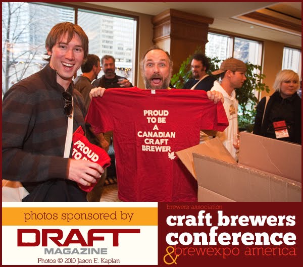 There seems to be a wave right now spreading throughout Canada, a wave of passion in the industry. It was evident in Chicago, with the many brewers and brewery representatives wearing their bright red t-shirts with the Maple Leaf on the back and the 'Proud To Be A Canadian Craft Brewer,' and I think it's about time. Canadian craft brewers nation-wide have a lot to be proud of and a little flair and showmanship like we see from American breweries is something that has sadly been lacking here in our country. Let's keep this momentum going!*pic on right taken by Jason E. Kaplan at the Craft Brewers Conference.