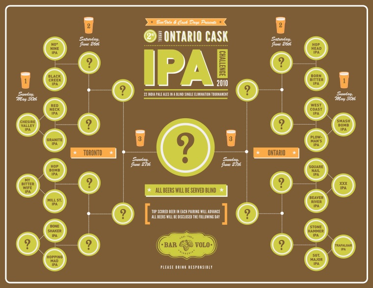 barVolo has released the official bracket for their 2nd annual Ontario Cask IPA challenge, which is set to begin this Sunday, May 30th.