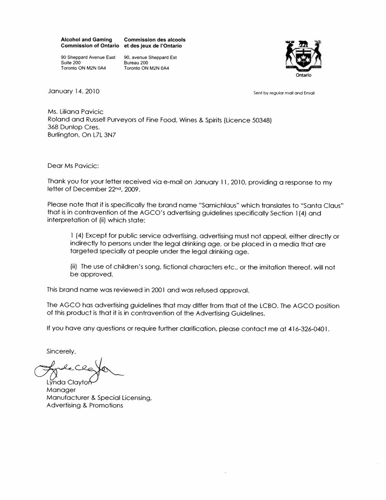 Here’s where it gets confusing. The AGCO first found the label in contravention of their advertising guidelines back in 2001 but the matter was dormant until recently. A single individual lodged a complaint with the AGCO, who by law were forced to investigate and their finding is relayed to the Pavicic’s in the letters.